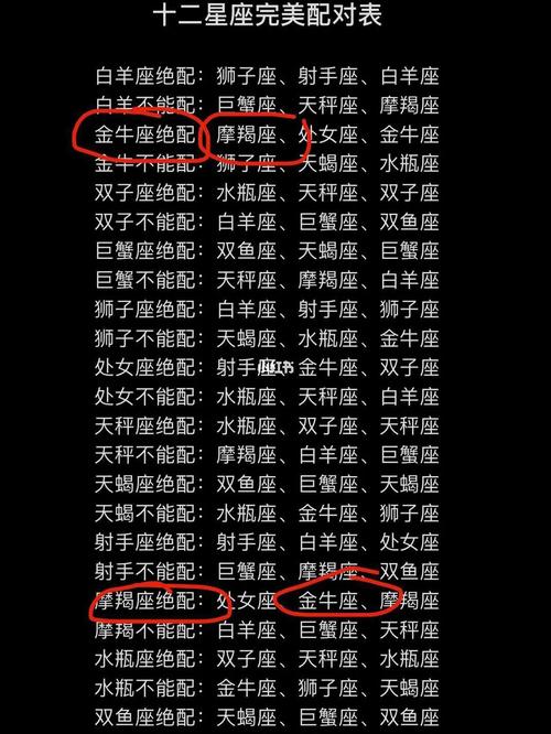 男女十二星座配对表