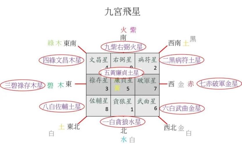然而,当然,我们不必真正死记硬背。只要我们理解组合的原理,即每颗星的五行关系,我们就可以研究它的含义,研究的基础是通过八卦。