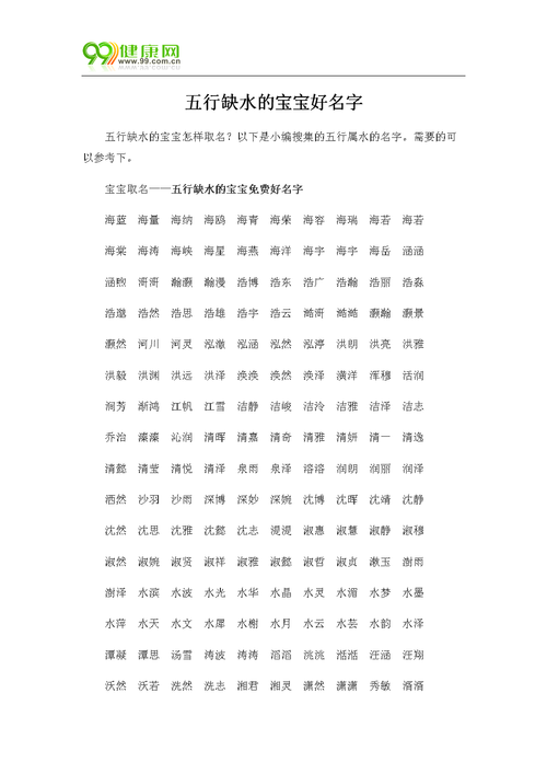 对于孩子的名字,很多家长在给孩子取名的时候会考虑孩子的出生日期和五行是否缺失。如果有缺失,他们会在取名时弥补。但是,为了取一个好名字,往往是一件苦恼的事情。本专栏为大家分析了五行缺水名称。