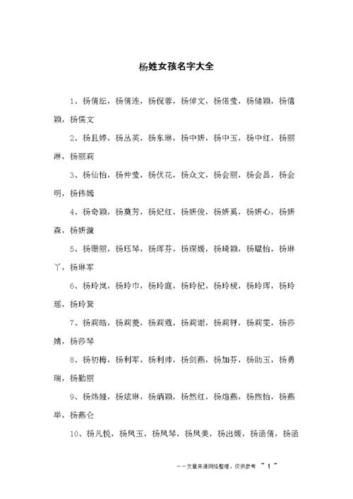 姓杨的女孩的名字 【杨暮】 暮字来自唐代祖咏:林显吉色,城中暮寒这首诗描写了雪后初晴、城中夕阳余晖的美丽诗意场景。同时,暮字是指夕阳照耀的傍晚,是一个诗意的词,代表了一天中最休闲、最轻松的时光。给孩子起这个名字,希望孩子以后能幸福,过上幸福的生活。