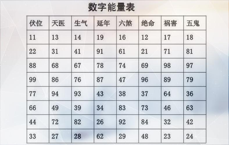 数字是有能量的算数字能量后,我们应该知道不同的数字能量代表不同的好坏。数字能量越大越好。 是参考能量表。