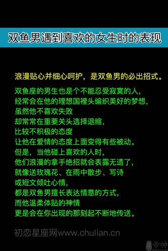 对于一部分人来说,温柔似水的双鱼男是他们的追求对象,因为双鱼男非常会玩浪漫,而且只有被他们放在心上,他们就会十分注意你,会注意你的一言一行,让你和他们相处时感到轻松愉快,但是如果想要追求到双鱼男的话,还是需要一些方法的。
