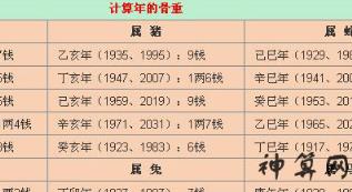 称骨测命表:出生年份、月份、时间、时间、骨重量对照表2