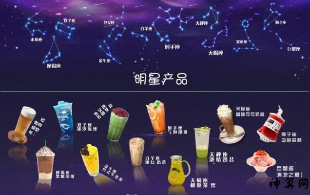 以新鲜果汁颜色为背景的十二星座图