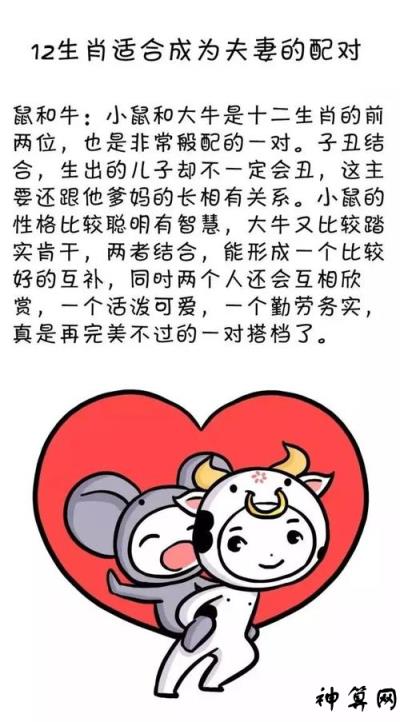 吉祥配对是最好的婚姻组合。对于黄道十二宫的牛来说,与吉祥的一个组成家庭将吸引财富和好运。他们的子孙后代满堂,晚年快乐,一辈子都不会红脸吵架。
