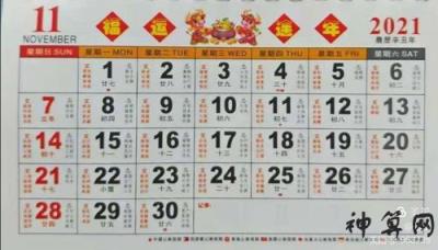 生肖日历表2021日历表