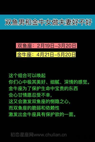 ??? 金牛座和双鱼座之间有什么不解之缘?为什么大家都说金牛座和双鱼座在上辈子相遇的时候注定了这辈子的缘分?当爱情发生时,他可能不在乎两个人之间的身份、背景和地位,更不在乎他们是否真的能走到最后。双鱼座和金牛座的命运是好的吗?