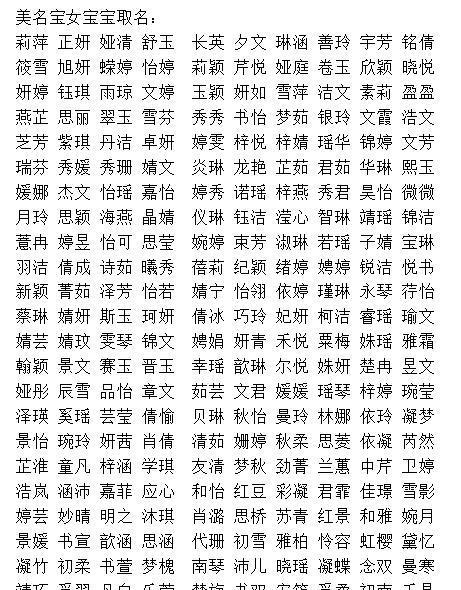 新生女婴起名字大全