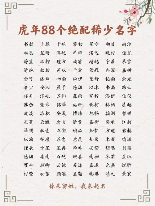 使用这样一个名字是一个非常优雅的名字,这个名字来自贝代王伟的送元二使安西魏城朝雨轻尘,客房绿柳新,朝雨是一个非常清新的孩子的名字。它包含了日夜的意义,浪漫而优雅。它包含了虎年的月亮。这里的雨是指早晨的雨,滋润一切,吉祥的预兆,作为孩子的名字,吉祥的节日隐藏着诗意的氛围,是一个罕见的好名字。