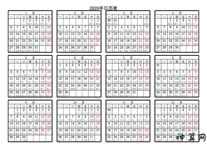 日历说明:浅蓝色代表24节气日,红色代表传统节日。