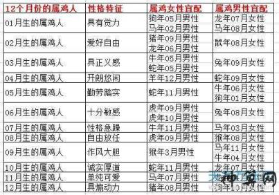 十二生肖属相婚配表:属鸡男和什么属相女最配