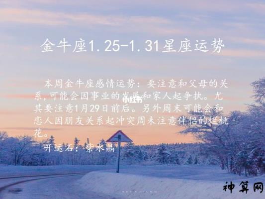 运程详解 对金牛座来说,事业发展迅速的一月。幸运之星木星和事业之星土星继续进入你的第十宫事业宫。受去年星象的影响,金牛座的事业可能会进入一个陌生的领域或环境。为了最终取得成功,我们必须挑战各种困难和挫折。他们的爱情运势波动很大,可能还有很多事情需要努力,需要提前做好准备;情绪稳定的金牛座有机会进入下一阶段。破财的概率很大,偏财运旺盛。把手头的工作做好,不要想着通过投资获得高回报,反而会有很多钱进账。