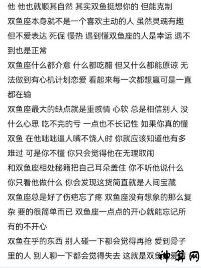 双鱼座女孩是一个浪漫的人,她们对感情,总是充满无尽的想象,怎样才能打动她们的心呢?太简单了,我不相信爱,是的,这么简单的句子,这么坚定的失望,救世音菩萨必须救赎,她会奉献给你最丰富的爱,让你重拾对爱的信仰。难怪她的朋友爱她总是爱错人。她挑铁石心肠做功德,付出,从来都不是问题。当然,她是给最需要的人的。所以,你一开始就选择了这个戏码,最后别忘了点头。