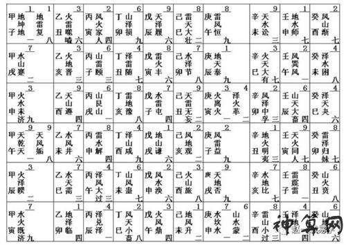 一白坎卦,二黑坤卦,三碧震卦,四绿浔卦,五黄无卦,六白乾卦,七赤兑卦,八白艮卦,九紫离卦。