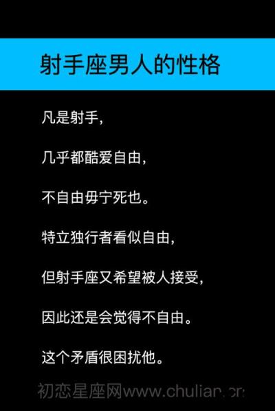 月亮射手座的性格特征 爱情观 真正需要什么? 性格坦率 月亮射手座是一个非常受欢迎的人,因为他们非常快乐和坦率。和月亮射手座相处是一件非常快乐的事情,他们不小心,从不放心,说,心很大,有时吵,第二天忘记。所以月亮射手座有很多朋友,每个人都喜欢和坦率的人相处。