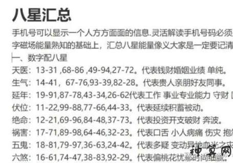 手机号码中的数字能量可以从数字磁场中找到或选择。数字能量磁场自古以来就被许多专业人士分析和回答。《易经》对数字能量有更具体的分析。如果你想知道手机的数字能量会给用户带来什么样的影响,你可以看到你手机号码中的数字磁场。13、31是天医,78、87是延年益寿,64、46是愤怒。三、七七是伏位,都是全吉数组。