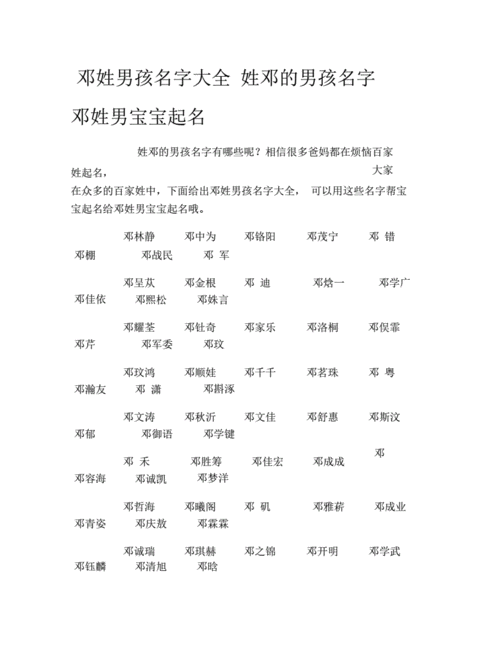 邓字的主五行是火,所以邓姓名中的第一个字一般都是水、金五行。