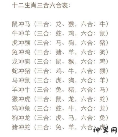 12个地支(生肖)有两种论好,一种叫三合,一种叫六合 所谓三合六合,是五行(木、火、土、金、水)中某些力量的吸引和凝聚。因此,和谐是五行力量的吸引力、亲和力和凝聚力。以出生年地支(即生肖)三合六合为依据。 三合是:申子辰合、亥毛未合、寅午守合、已酉丑合。 三合是一种光明正大的明合。是三个生肖的吉配。地支共有四组吉配。 鼠:三合─龙、猴、六合─牛 牛:三合─蛇、鸡、六合─鼠 虎:三合─马,狗,六合─猪 兔:三合─羊、猪、六合─狗 龙:三合─鼠、猴、六合─鸡 蛇:三合─牛、鸡、六合─猴 马:三合─虎,狗,六合─羊 羊:三合─兔、猪、六合─马 猴:三合─鼠、龙、六合─蛇 鸡:三合─牛、蛇,六合─龙 狗:三合─马,虎,六合─兔 猪:三合─兔、羊、六合─虎 三合局的本质是,三方会合后,增加了子(鼠)、毛(兔)、午(马)、酉(鸡)的力量。如申子辰三合水局,增加了子水的力量,是申金、辰土、子水三方以子水为中心的聚合。如申子辰三合水局,增加了子水的力量,是申金、辰土、子水三方以子水为中心的聚合。 六合是一种暗中帮助你的贵人。六合不是六个生肖组成。但六组贵人。 六合是:子与丑合,寅与亥合,毛与守合,陈与酉合,已与申合,午与末合。 子丑六合:属鼠属牛,是一群贵人 寅亥、六合:属虎属猪,是一群贵人 毛旭、六合:属兔属狗,是一群贵人 陈酉、六合:属龙属鸡,是一群贵人 三合六合:属蛇属猴,是一群贵人 午未六合:属马属羊,是一群贵人 任何一组的两个人,冥冥之中,相处得那么融洽,彼此都愿意互相帮助。 所谓属相不合,主要是指相冲、相害、相刑等。