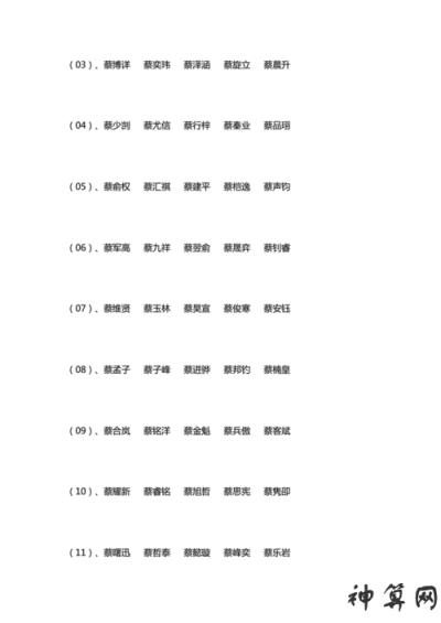 蔡字的五行为木,所以蔡名字中的第一个字一般都是金、土五行。