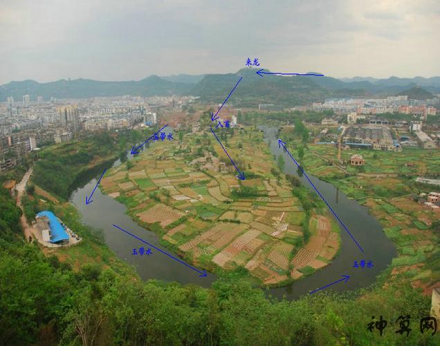 阆中古城位于山川环绕的穴位吉祥地。其建筑布局也严格遵循堪舆穴法的规划布局。阆中山环绕选定的城市中心建有中天楼,以堪舆天心十的隐喻。城市其他街道以中天楼为核心,以十字街为主干,层层展开,布若棋局。