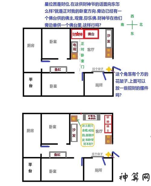 武财神的位置不同于文财神的位置。武财神应该放在门的正对面,这有助于招募财富,这有助于招募财富。同时,它可以守卫家庭,防止邪恶的东西进入自己的房子。