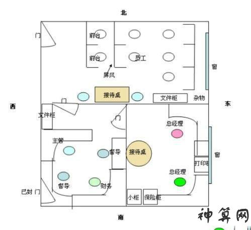 老板的办公室不能太大。聚气不容易,孤寡,业务会衰退。不要认为房间越大越优雅。当然,太小是不合适的。这意味着业务不易扩大,模式发展有限。一般来说,应在15~30平方米之间,最好设置在较高的楼层 。办公室的门不能从靠山开。也就是说,开门的方向不能在老板后面的墙上,这很容易导致公司的下属秘密捣乱,他们无法察觉,这将给公司带来意想不到的灾难。直接对着老板台也不是一个好办法,最标准的开门就是在老板台的右前方开门,这样才是合理的开门方式。