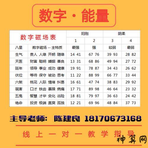 有八星的数字能量,其中有吉有凶。最好的八星数组有:14/41、67/76、39/93、28/82,能量从左到右依次下降。这种磁场的特点是用户非常乐观,思想活泼,面对事物有更多的想法,但也更高贵,更受欢迎。19/91、78/87、49/94也是非常吉利的数组,可以让用户拥有非常好的职业运势,让他们的职业生涯繁荣顺利,尽快升职加薪。