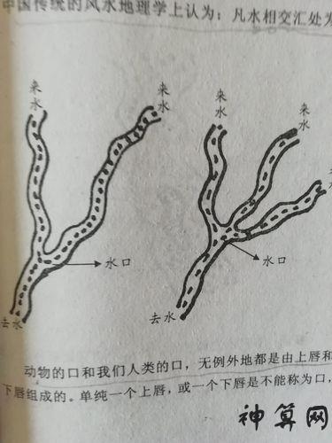 4、木局水口 未为木库位于西南,是桂龙木局的正位,若水口位于西南丁未坤申庚酉方,则称金羊收桂甲之灵。 在龙与水的运行轨迹中,水为阳龙为阴,阳从左转,阴从右转相通。因此,水顺龙逆转。如果龙水交叉在正确的位置,为真穴,如果龙水不相交,则为假穴。