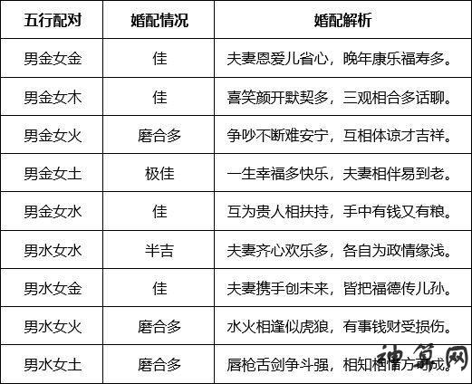 婚姻的另一种方式是看属相的五行。属相的五行如下:
