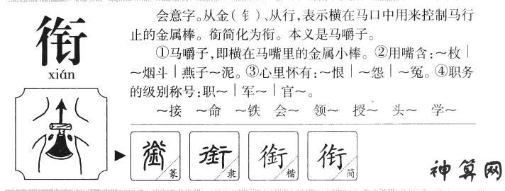 衔东西的衔字怎么写