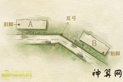 反弓水——指住宅前的河流呈反弓形。反弓路——道路弯曲,房子的门正对着反弓路。反弓建筑——圆形建筑,如一些大型超市和大型体育馆附近的房屋,都被圆形反射,称为反弓建筑。