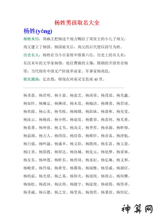 杨姓是百姓之一。孩子的出生给父母带来了很多快乐,但在快乐的同时,父母需要考虑如何给孩子取一个好名字。 接下来,让我们来看看姓杨的男孩的名字。