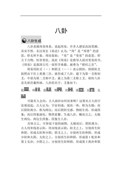 八卦象征着中国古代文化,以一种神圣的方式传达着人类对命运和宇宙的不同思想。八卦包含智慧,引导人们在荒野中生活,把生活当作命运,让人们在这个混乱的世界里找到共同的道路。从动物园的大象到农村的儿童,八卦传播的概念深深扎根于中国文化中,支持着一种精神信念。