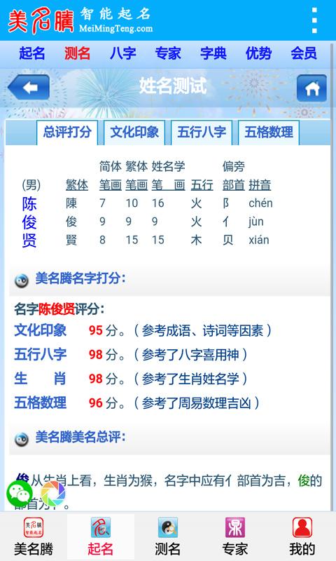 4. 五格的测分也必须遵循传统的五行理论,不能相互抵消。