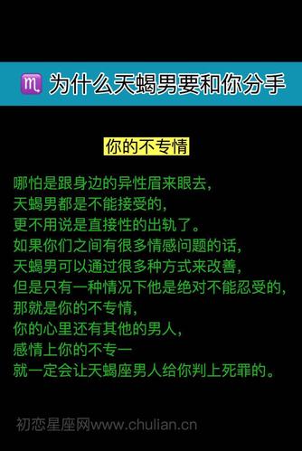 分手的大部分原因都是从理性的角度出发的,天蝎座非常重视这一点。他们会详细考虑对方给出的情况,以客观理性的态度判断情况,最后决定是否分手。