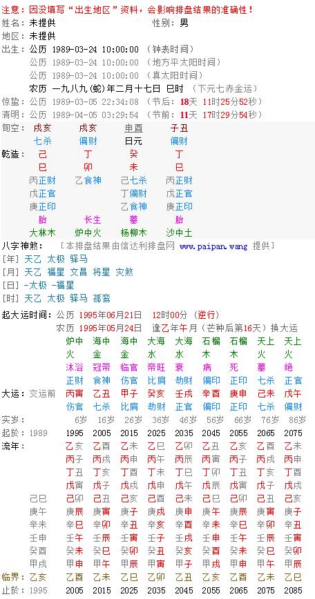 2)排盘:接下来,确定的八字要按照固定的一定规则排列成一个格局。