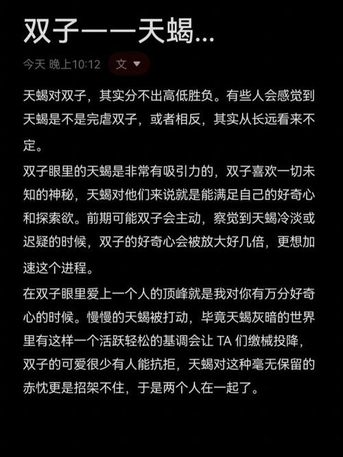 天蝎座的人通常都很内向。他们不容易表达自己的情感,喜欢独处。他们经常选择用“安全区”来保护自己。这些特点使他们在爱情中显得有些避难,但也使他们对爱情有一定的距离感。双子座的人更善于表达。他们更坦率,更随意,愿意尝试新的爱情,但他们不乏追求稳定的态度。因此,他们的个性也大不相同。