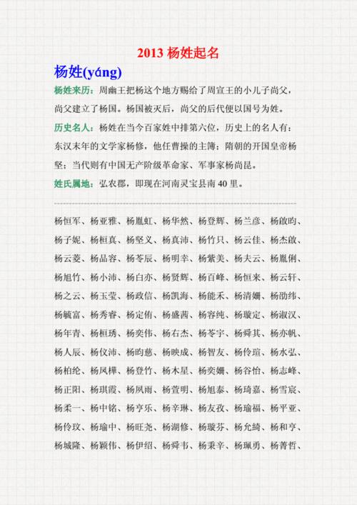 1. 杨毅:杨毅是指中国常见姓氏“杨”开头的名字,汉语拼音为“yáng yī“,取自《尚书·郊礼》中的“君之杨一,和而赐之”一词。它代表了一个坚强、优雅、忠诚、严谨、勤奋、自信的女人。杨毅以自信、温柔、智慧而闻名,适合2022年新一代的名字。