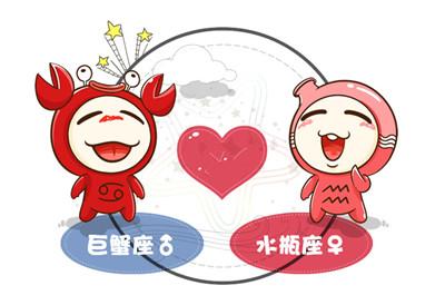巨蟹座的人性格严肃、谨慎、忠诚,善良、慷慨,对爱情有着强烈的追求。他们的感情由内而外地表现出来,总是乐于投入,无论是付出还是为他人服务,都会尽力把事情做好。水瓶座的人具有独立、自信、理性、果断的特点,具有良好的判断力和持久性,始终不放弃梦想,敢于做事,可靠性强,追求自由、独立、直率的真实自我表达。