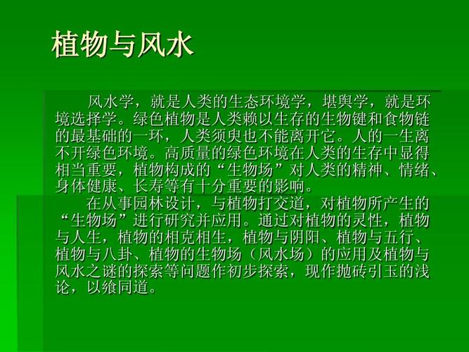 不同植物带来的风水效果植物的种类和颜色都有其独特的能量和意义,不同的植物也会带来不同的风水效果。例如: