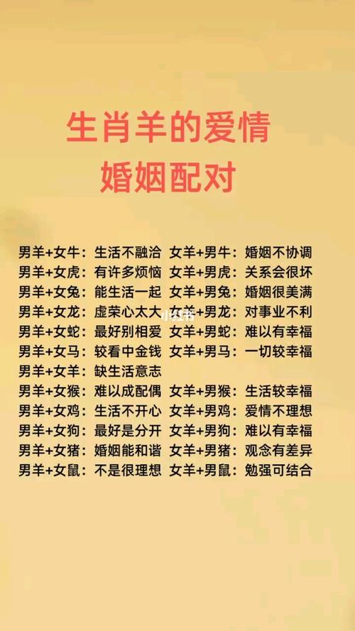 生肖羊婚姻的核心概念生肖羊婚姻匹配的所有内容都是基于某种时间意义上的起源。通过具体的方法和理论,它可以帮助双方找到最合适的婚姻伴侣。简而言之,它可以让双方比较不同的婚姻,并以四柱八字的方式判断匹配的对象是否最合适。