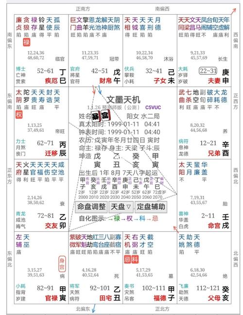 紫微斗数的计算原理紫微斗数的计算原理是基于一个人的生日八字。生日八字包含一个人的出生年份、月份、日子和时间。每个元素代表一种五行力量。这些五行力量结合在一起,共同决定了一个人的命运轨迹。通过仔细计算和解释这五种元素的力量,紫色微斗数可以产生各种关于一个人未来发展的信息,如个人才能、职业运气、财富、健康、婚姻等。