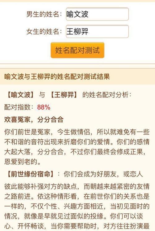 测试免费婚姻配对的意义虽然有很多网站可以免费测试婚姻配对,但测试婚姻配对的意义比以前更重要。正如我们所知,现代社会是一个快节奏的社会。由于社会的发展,婚姻状况也发生了很大的变化。因此,测试婚姻配对可以更好地帮助用户确定他们未来的婚姻前景。此外,免费测试婚姻配对还可以帮助用户更准确地规划自己的未来,从而更准确地了解自己的方向,提高自己成功的机会。因此,免费测试婚姻配对是非常必要的,这也是许多人现在正在尝试的一项技术。