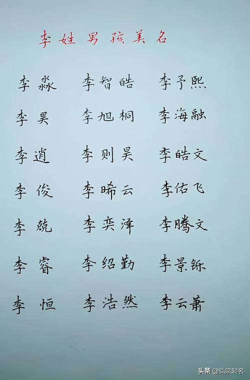 李名的传统特征李姓的传统名称大多采用幽默、风趣、寓意深刻的含义,如“立初”、“理恩”、“丽语”、“立国”等。所有这些名字都遵循“吉”。、“利”、“及”的命名原则不仅祝福孩子取名吉庆,也表达了对孩子未来的愿望和希望。另外,命名时要注意避免“重名”、“假名”等现象的出现,以免对孩子的未来产生不良影响。