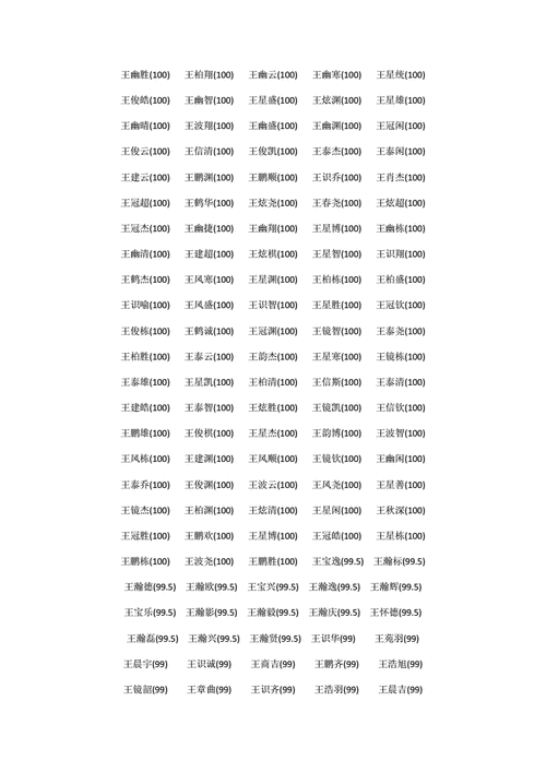 今年王姓宝宝名字大全