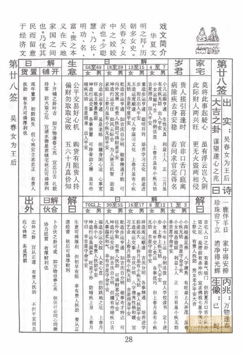 在中国文化中,有许多人相信佛教。他们通过拜佛、念经、念佛等方式祈祷自己的愿望。佛灵签就是其中之一,有时候会在寺庙的灵签亭里抽签。那么佛灵签28签是什么呢?我们来看看。
