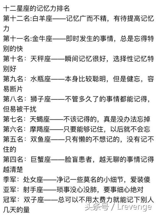 狮子座:狮子座的人记忆力很强,会很快记住新的信息,善于将不同的信息有机地结合起来,形成新的思维模式。