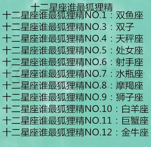 狐狸精在人们心目中一直是一种神秘而奇怪的存在。在12个星座中,也有各种各样的狐狸精。让我们来看看12个星座的狐狸精列表。