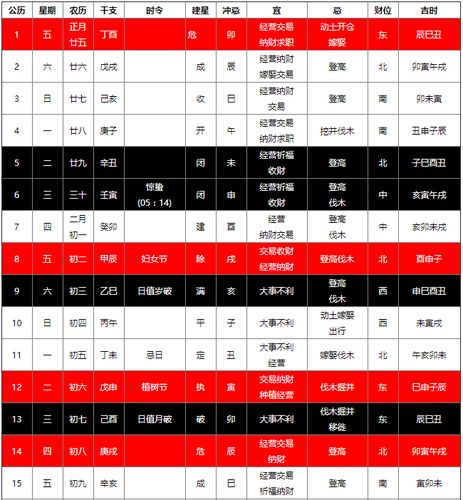 三月大吉日 吉神守身2019年3月的吉日分别是3月1日、3月6日、3月7日、3月13日、3月16日、3月20日、3月21日和3月27日。这些天,人们可以根据老黄一直安排自己的事情,比如种粮、上坟、搬家、寻找继承人、开市等等。此外,这些吉祥的日子也可以用来祭祀祖先和神灵,祈求健康和安全。