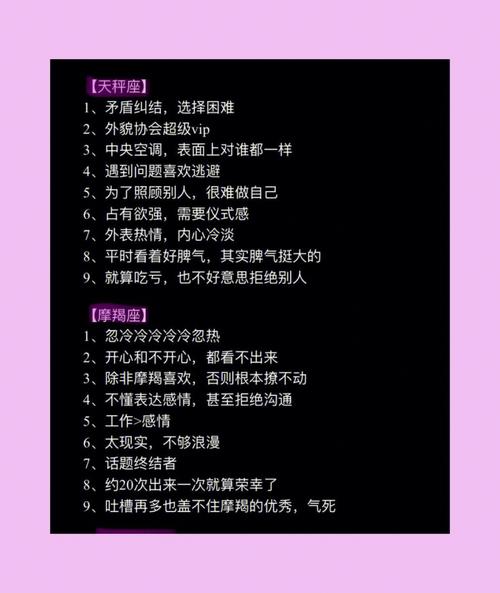 天秤座天秤座的人优雅、美丽、善良。他们非常注重审美和谐和公正。他们善于照顾人,也非常注重外表和形象的塑造。天秤座的人有能力审查和衡量问题,总是想保持平衡和公平的态度。但有时天秤座的人很难做出决定,也可能会显得优柔寡断。